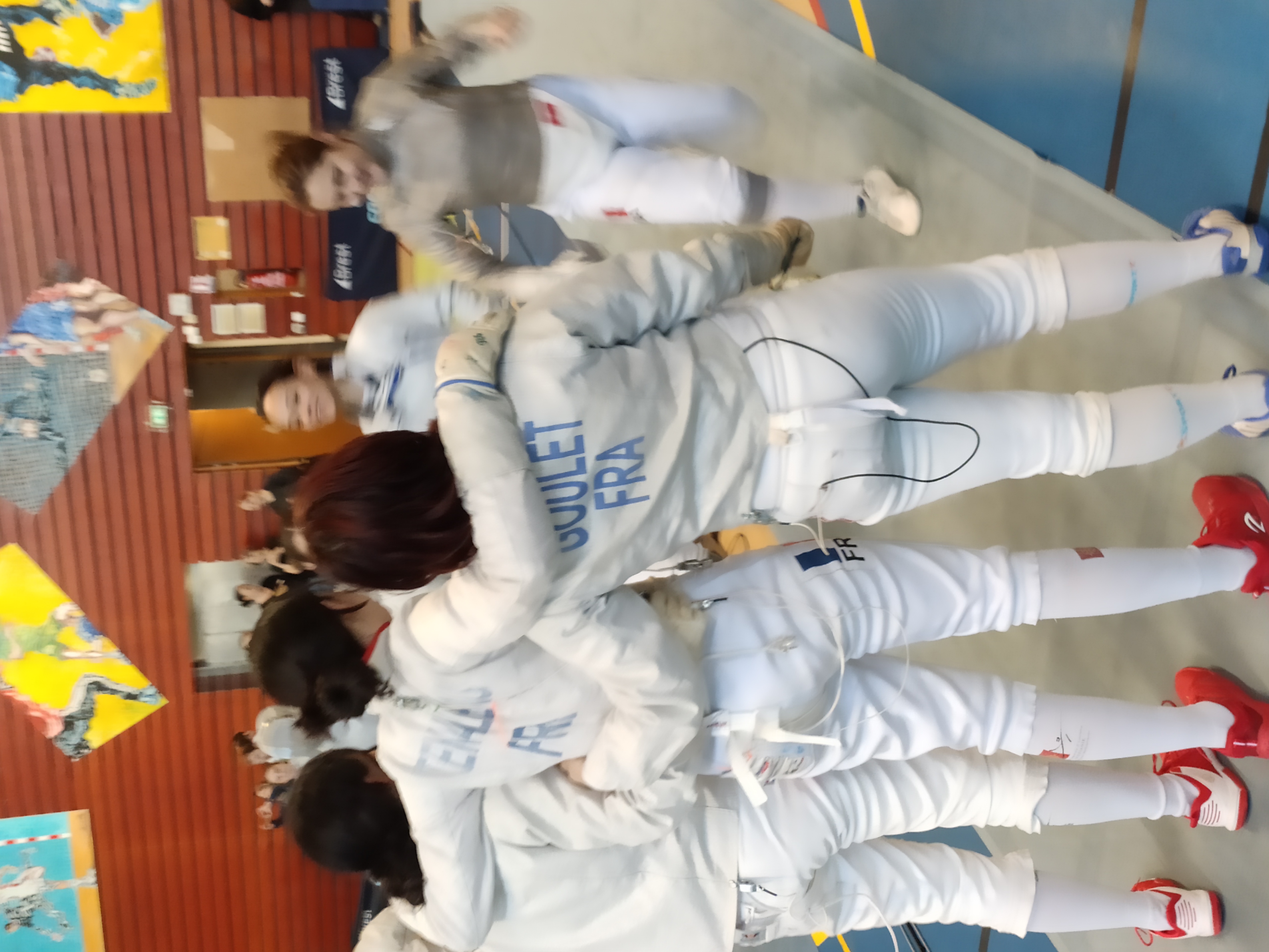 Les poules se passent de manière variable selon nos tireuses, avec 4 victoires pour Charlotte, 1 victoire pour Océanie et des défaites pour Julie, malgré de belles choses.
