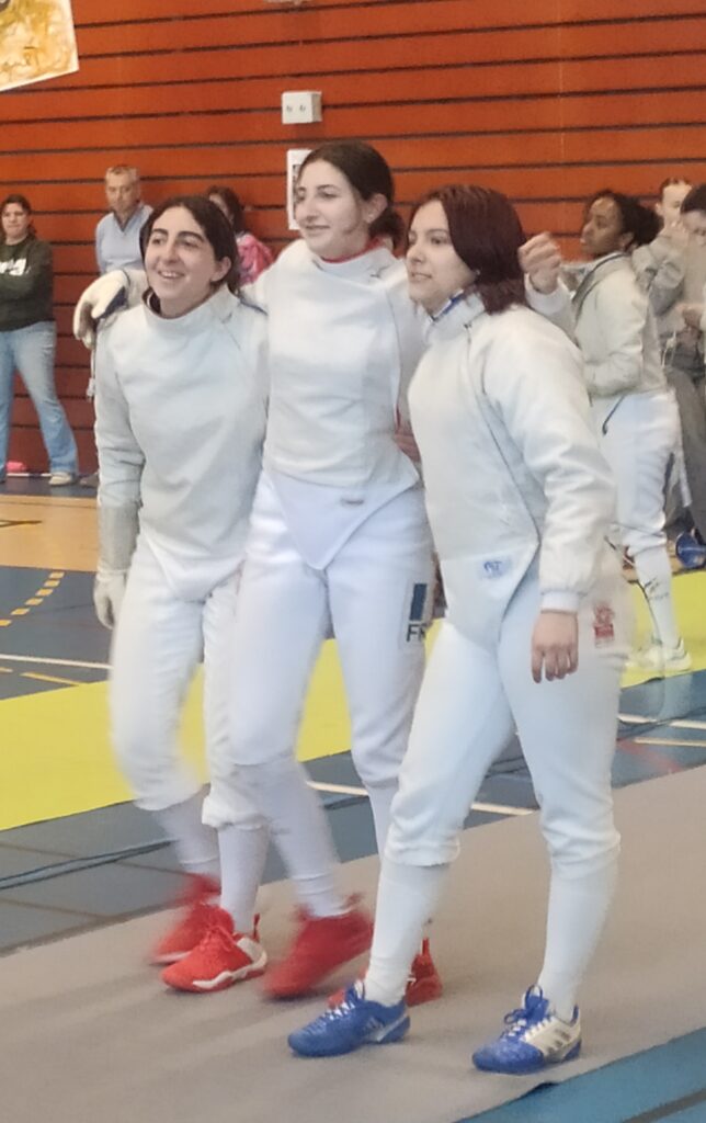 Le 1er match est extrêmement relevé puisqu’il est face à l’équipe numéro 1 de Roubaix. Les filles ne s’en laissent pas compter et relèvent le défi avec sérieux et motivation. Chaque relai prend des points, mais les filles d’en face se détachent progressivement et l’emportent dans ce 1er tour. Qu’à cela ne tienne, les toulousaines restent concentrées et après un 2e match serré jusqu’au bout, elles échouent d’une touche (44-45) face à l’équipe d’Orléans 2, épaulée par une très forte tunisienne. Le 3e match qui suit face à la Rapière ne parviendra pas à redonner le sourire à nos tireuses qui devront se contenter d’une journée de solidarité et d’expérience dans cette nouvelle épreuve.