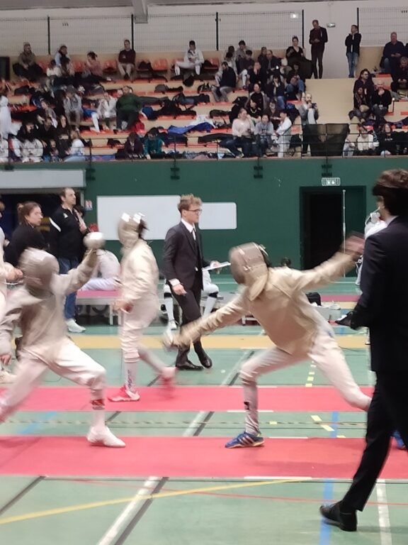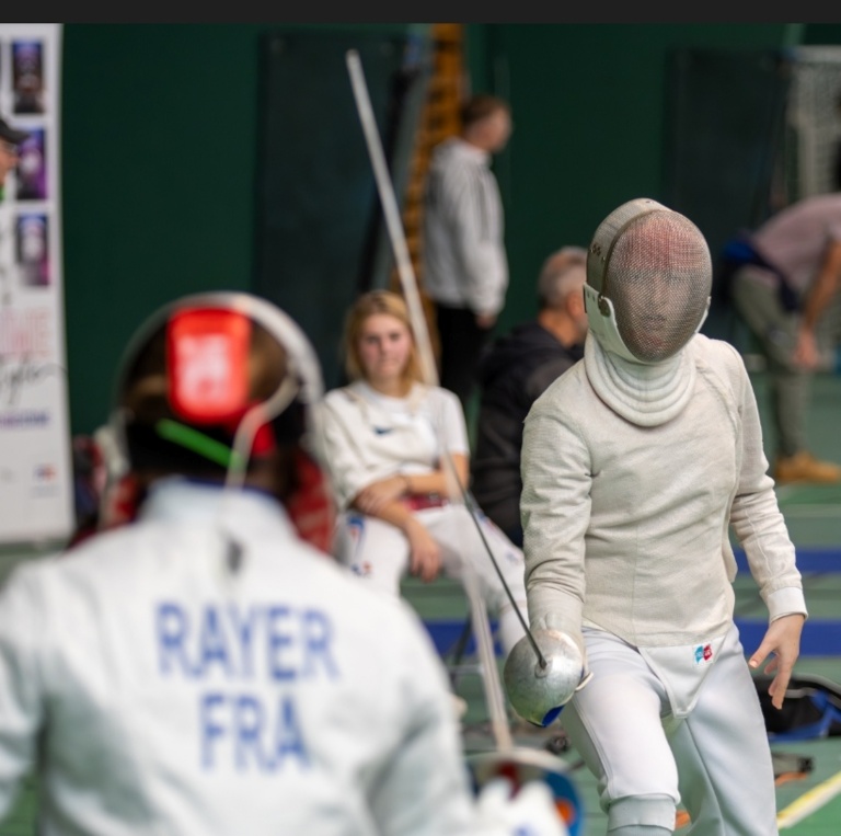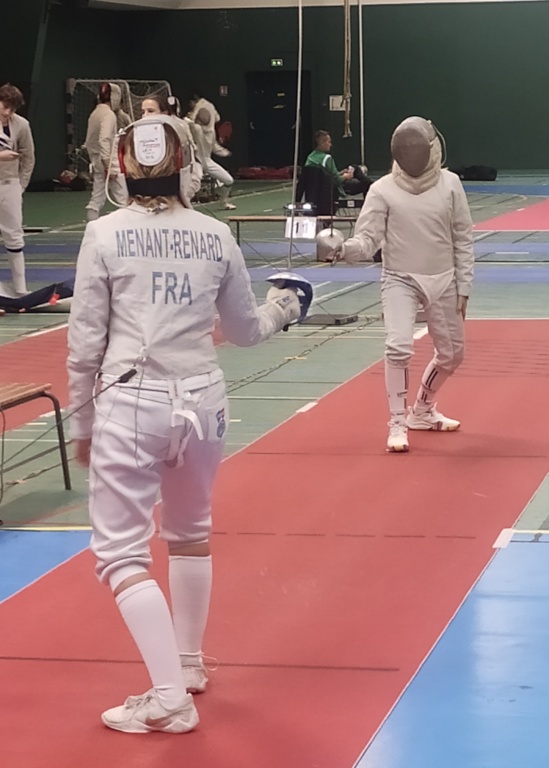Enfin, Charlotte réalise une poule parfaite avec des victoires tranchantes ! Elle sort 2e ex-aequo du classement des poules, ce qui lui permet d’attendre sereinement ses prochaines adversaires. Elle enchaine les victoires face à Olivia de Tarbes et Mila Piolat de Clamart pour se retrouver face à une autre Charlotte (Rayer) en quart de finale. Un match crispant et serré jusqu’à la dernière touche ! Notre Charlotte, pleine d’autorité, mène à la pause, mais se laisse reprendre face à une combattante qui a changé de tactique. Elle manque de peu ce podium national (13-15). Elle termine tout de même à une belle 6e place de cette compétition, synonyme pour elle de sélection française pour la prochaine coupe du monde M17.