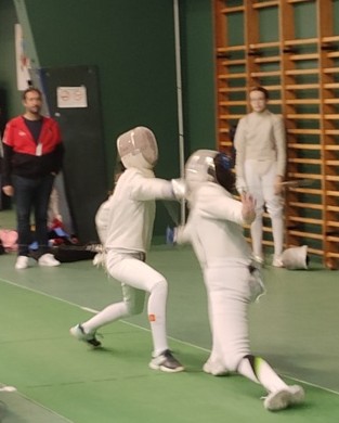 Leia est elle aussi en jambes en ce début de journée avec 5V pour 1D à 4 touches. Elle chute de peu (12-15) contre notre plus belle rivale régionale, Nina Zacchia, et finie à la 12e place de cette compétition.