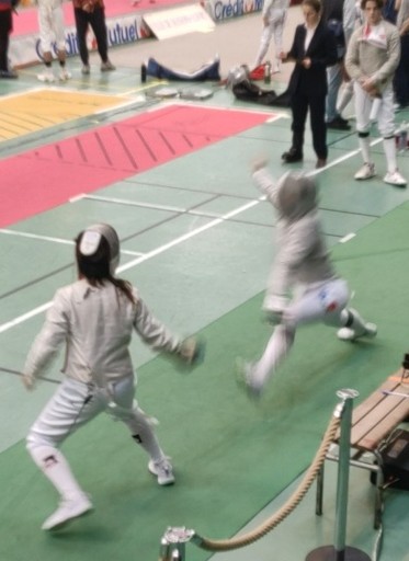Après seulement deux victoires en poules mais de nombreuses touches dans les autres matches, Lisa doit sortir le grand jeu dès le 1er tour de tableau. Ce qu’elle parvient à réaliser, sereine et pleine de parades ripostes en quinte dévastatrices !